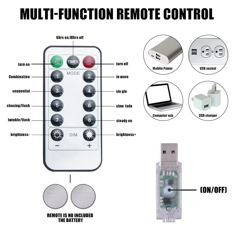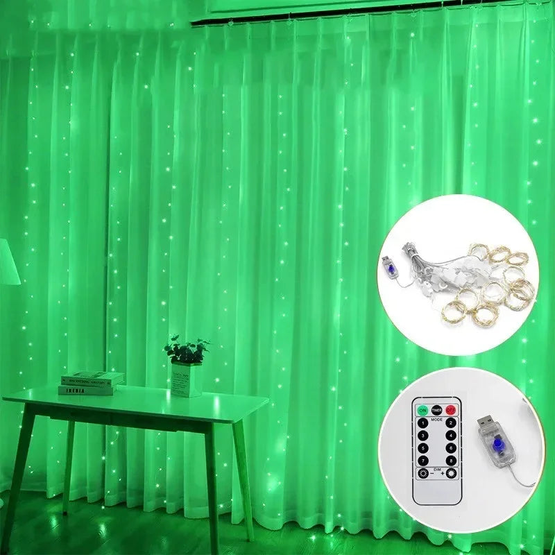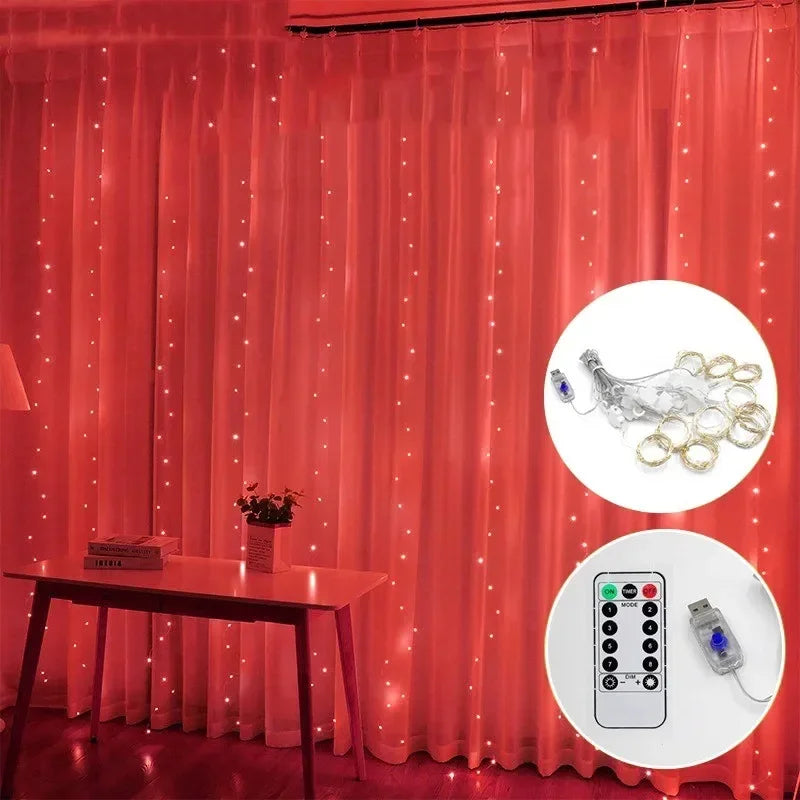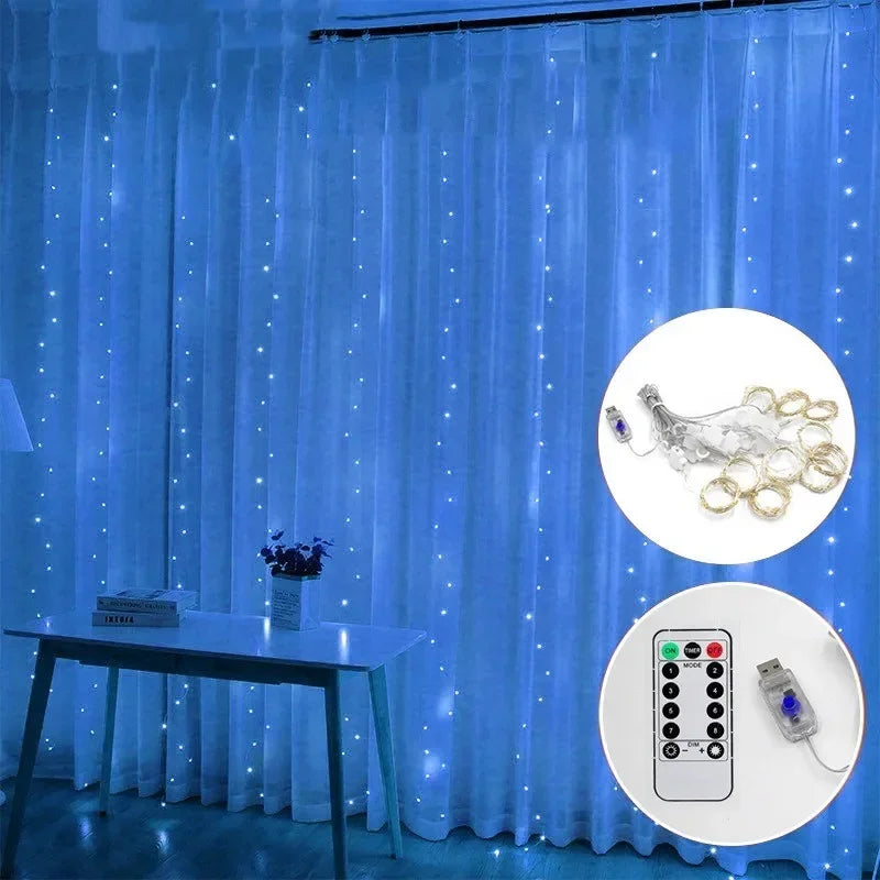 3M LED Curtain Garland Fairy String Lights Christmas Holiday Party Wedding Decoration USB Remote 8 Modes Waterfall Lighting