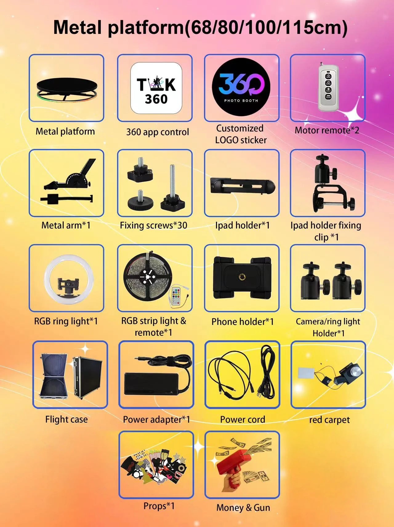 Material of 360 Photo Booth: Solid metal/LED & Tempered glass