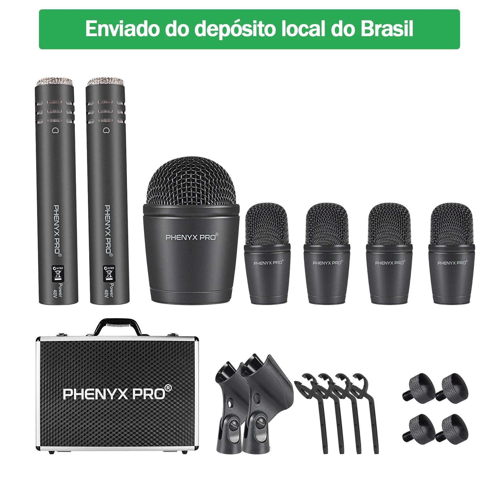 Phenyx Pro 7-Piece Drum Instrument Microphone Kit, All Metal Wired Wire microphone instrumentfor Bass/Tom/Snare/Hi-hat Cymbals