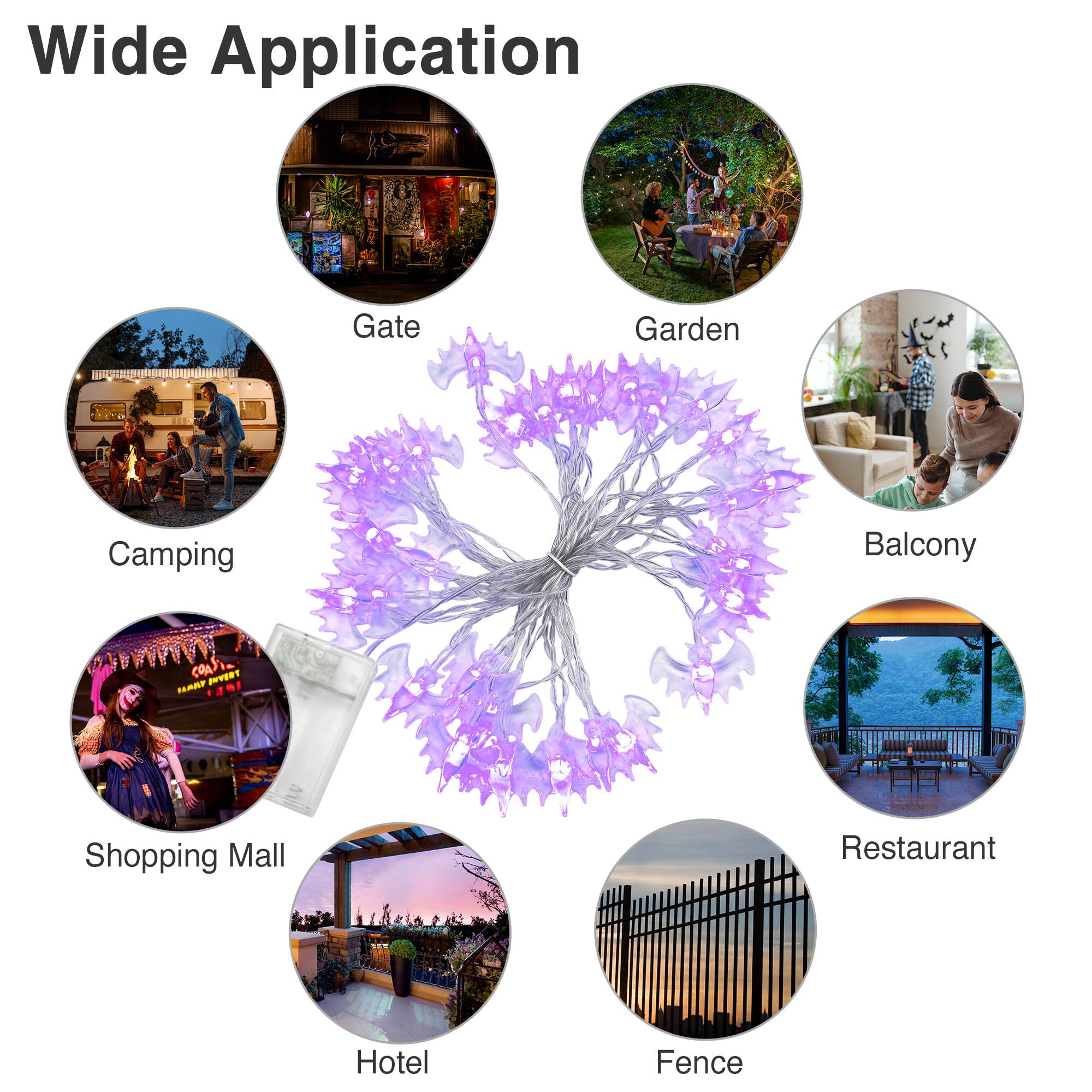 Specifications: - Overall Length: 183 7/16" (466 cm) - Bat Light Dimension(LxWxH): 1 3/8" x 1 7/8" x 1/4" (3.5 x 4.8 x 0.7 cm) - Number of LED Lights: 30 - LED Power: 0.5 W - LED Lifespan: 50,000 hrs - Color Temperature: 6000 K - Net Weight: 0.4 Lb (0.18 kg)