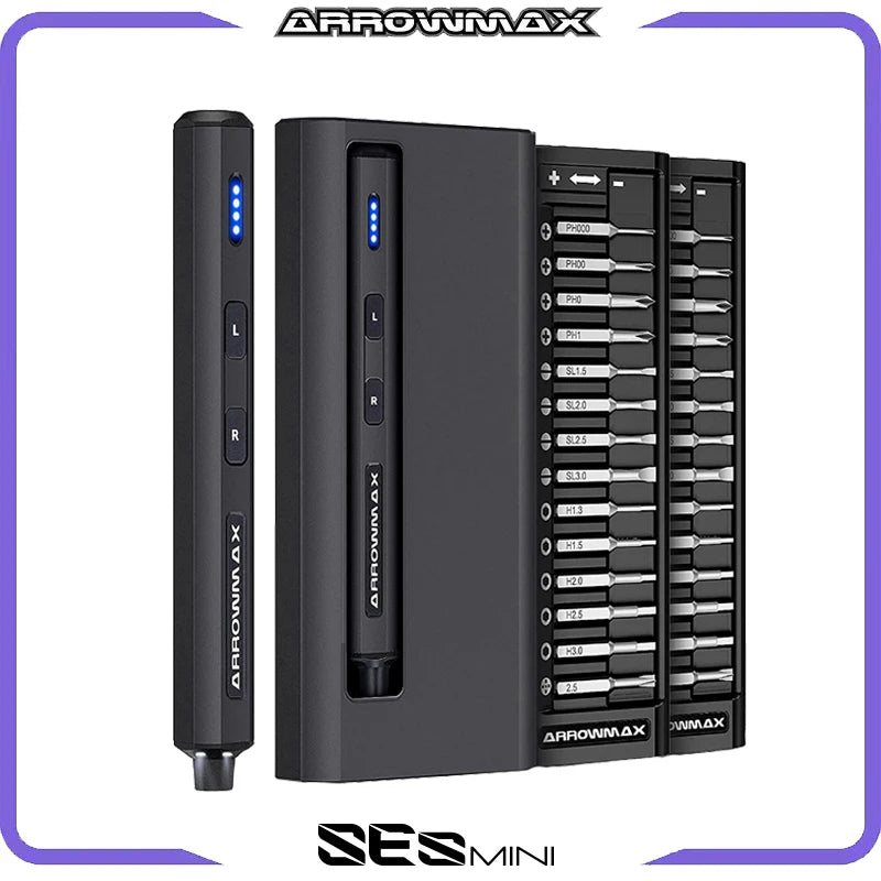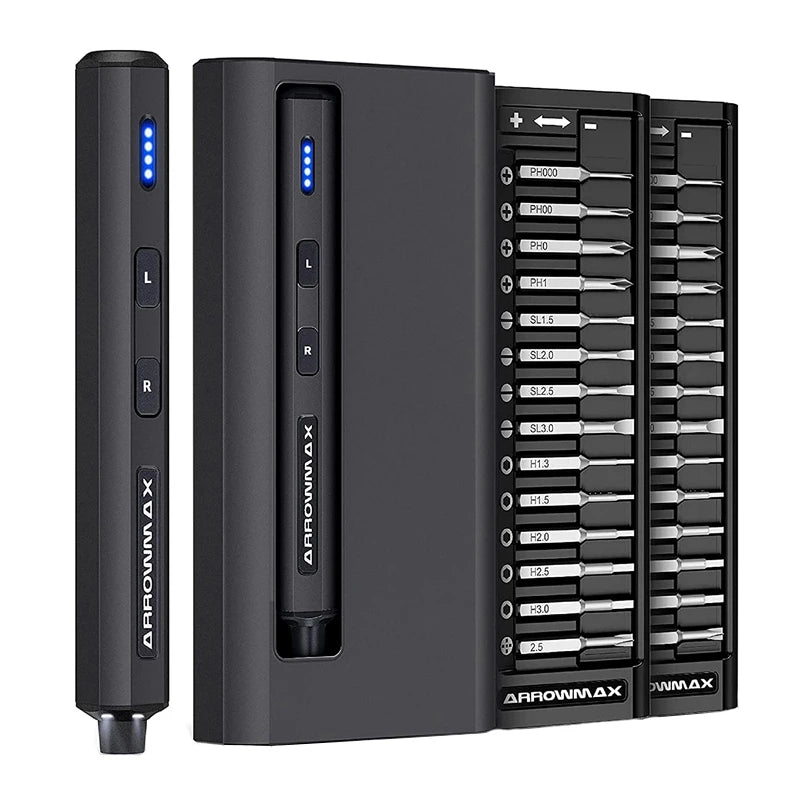 ARROWMAX Mini Electric Screwdriver Set 28 in 1 Magnetic Precision Bits (SES Mini Black) Rechargeable Cordless Screwdriver Kit