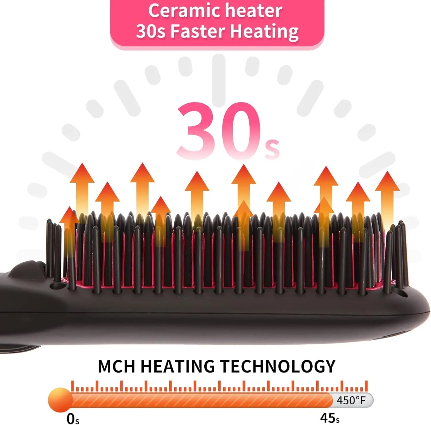 Negative ion Hair Straightener Brush, Anti-Scald Portable hot Hair Styling Tools appliances Comb for Natural Thick Hair Women