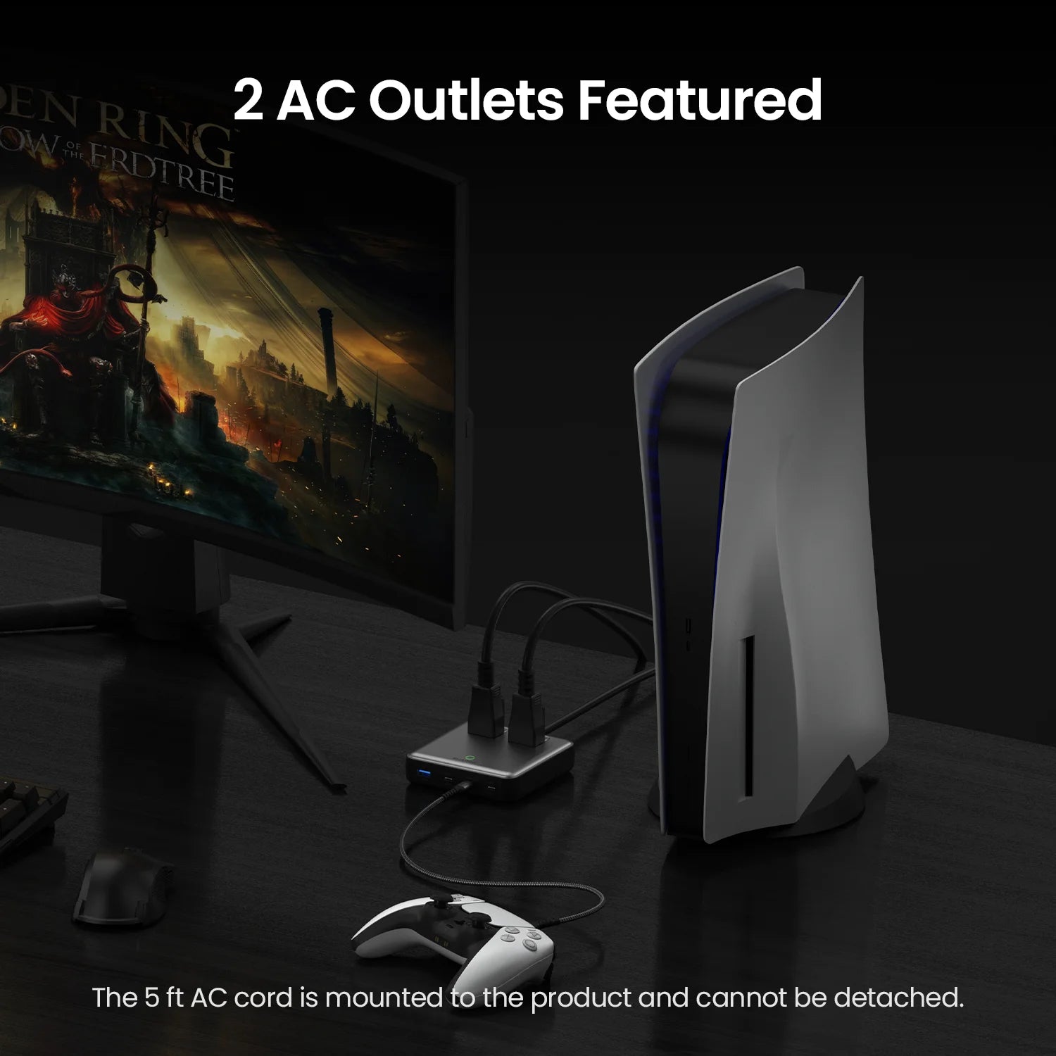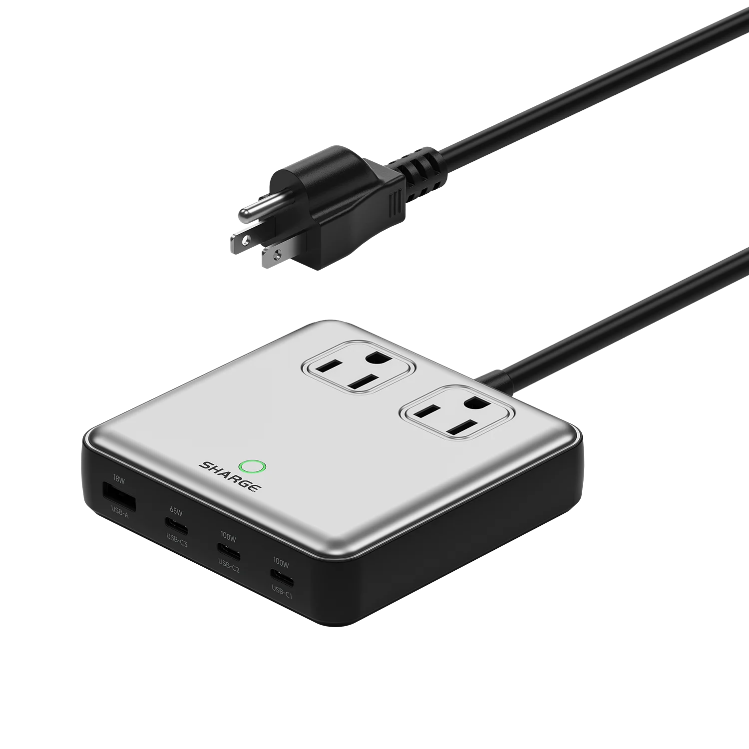 SHARGE 100W USB Charger 6 Ports GaN Desktop Charging Station Extension Cord 5ft for MacBook iPhone 15