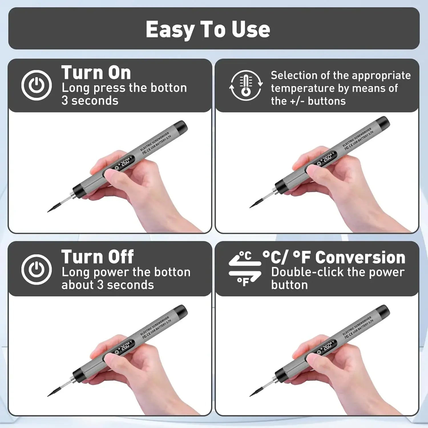 1000mAh USB LED Digital Electric Soldering Iron Kit Mini Cordless Adjustable Temperature 300-450℃ Smart Welding Solder Tool