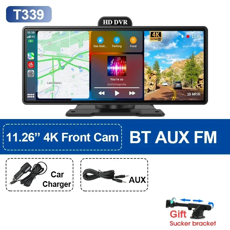 11.26'' inch Car DVR 4K Dash Cam Dual Lens Wireless Carplay & Android Auto Video Recorder Monitor GPS Navigation 5G Wifi FM AUX