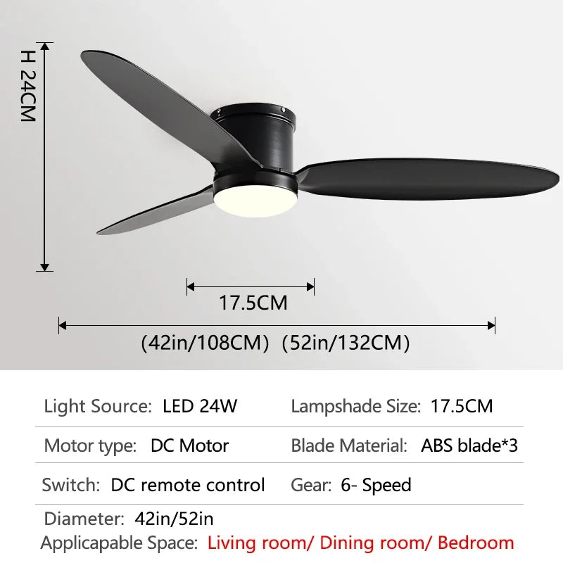 52inch Low Floor Ceiling Fan Light Black DC Remote Control Led Fan Llights Indoor Restaurant 110V 220V With Fan Chandelier