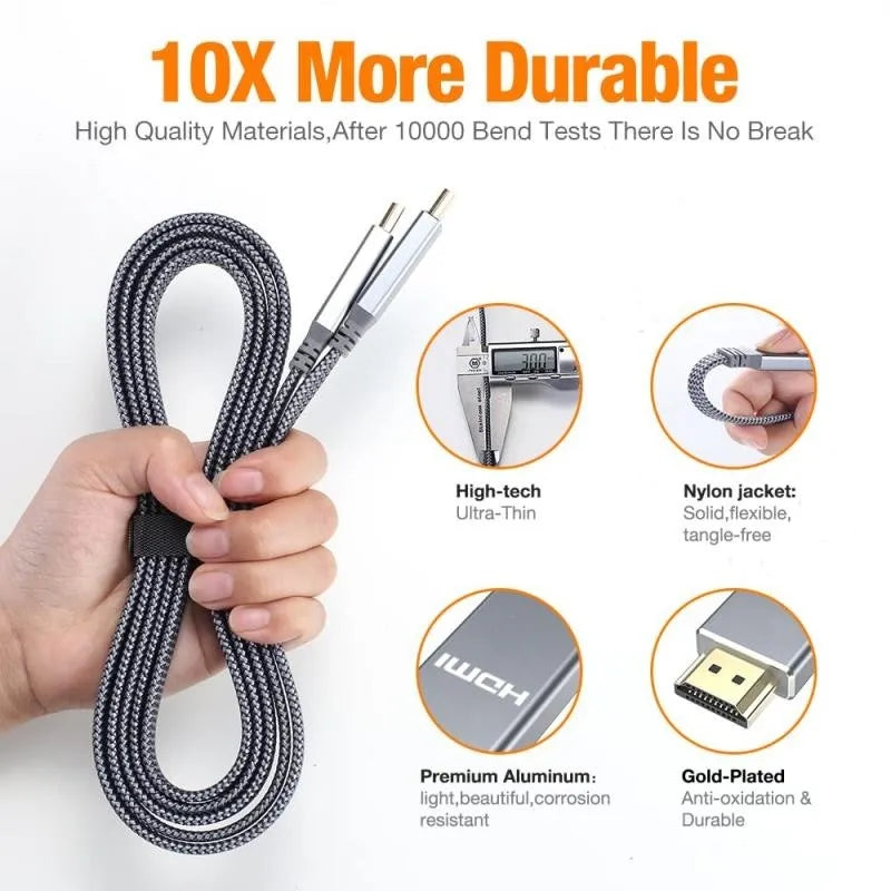 8K HDMI Flat Cable 48Gbps High Speed 8K60 4K120 144Hz Braided HDMI 2.1 Cord 3D eARC HDCP 2.2&2.3 Compatible with Roku TV/PS5