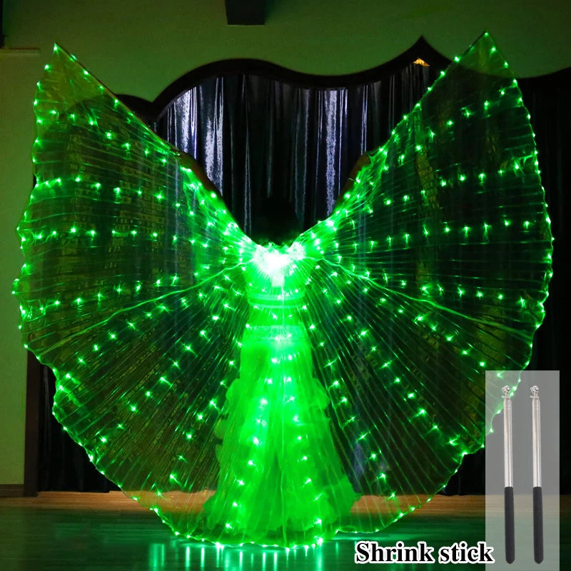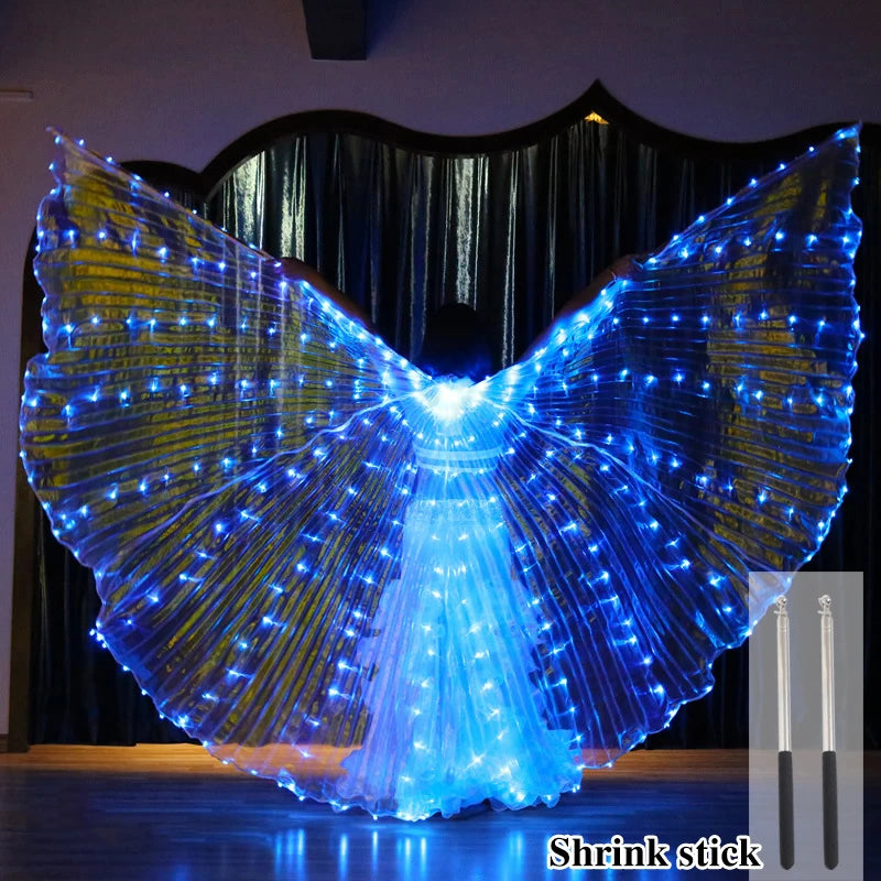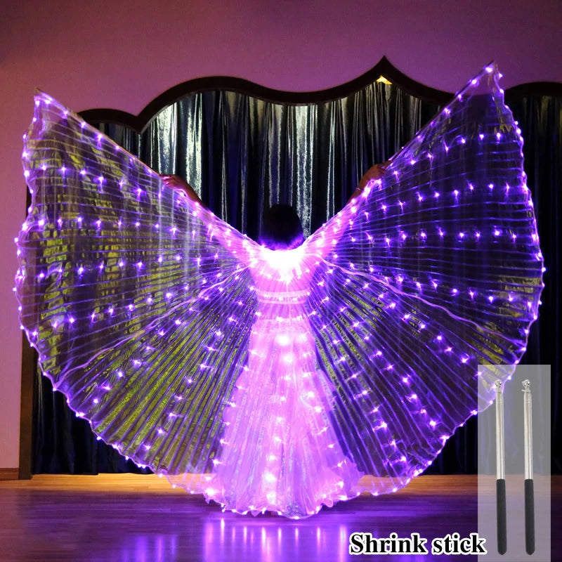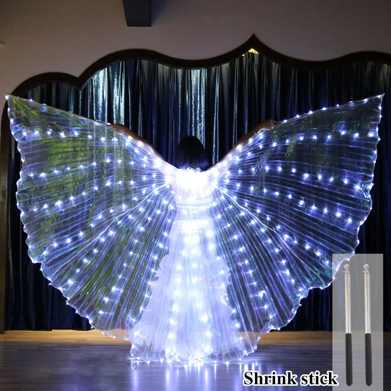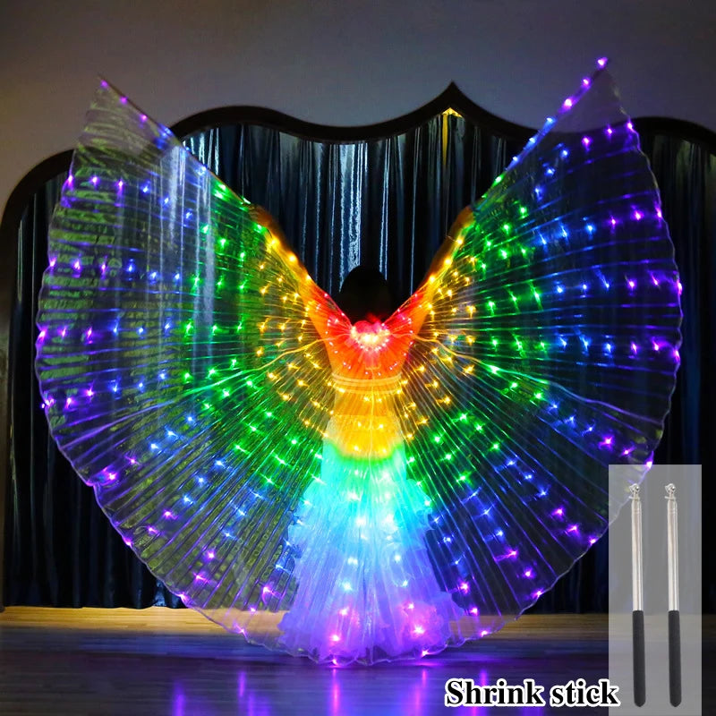 Belly Dance LED Isis Wings with Telescopic Sticks Butterfly Fairy Wing Colorful Glow Costume Carnival Party Halloween Dress Up