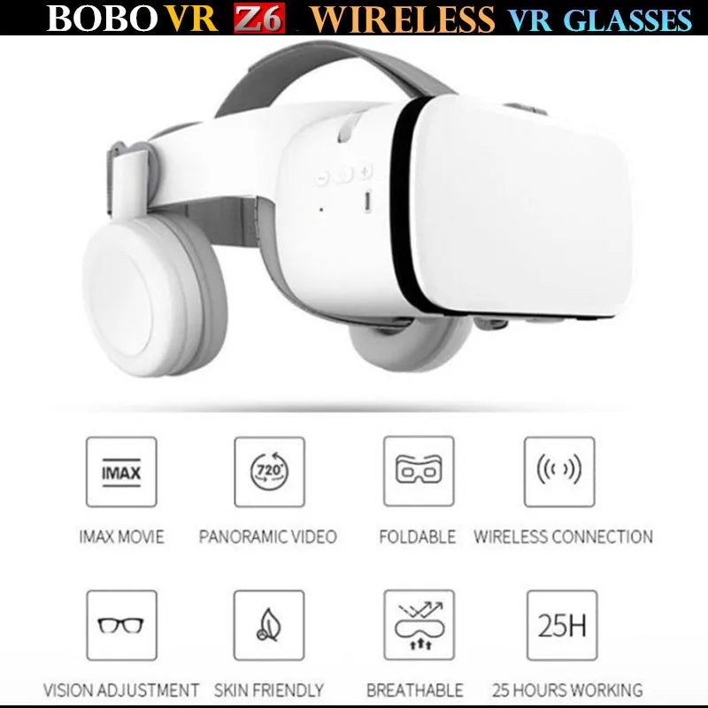 BOBO Z6 Wireless VR Glasses: Wireless V4.2 Headphone with Mic