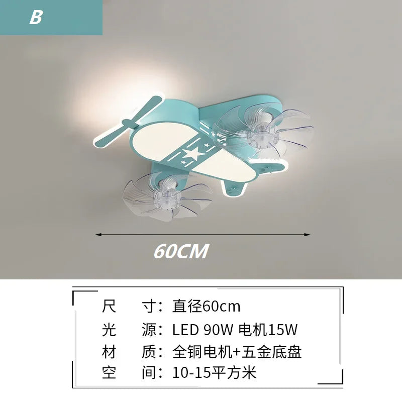 LED Aircraft Ceiling Light Cartoon Remote Control Fan Lamp Boy Room Lights Children's Room Bedroom lamp Gift Light For Children