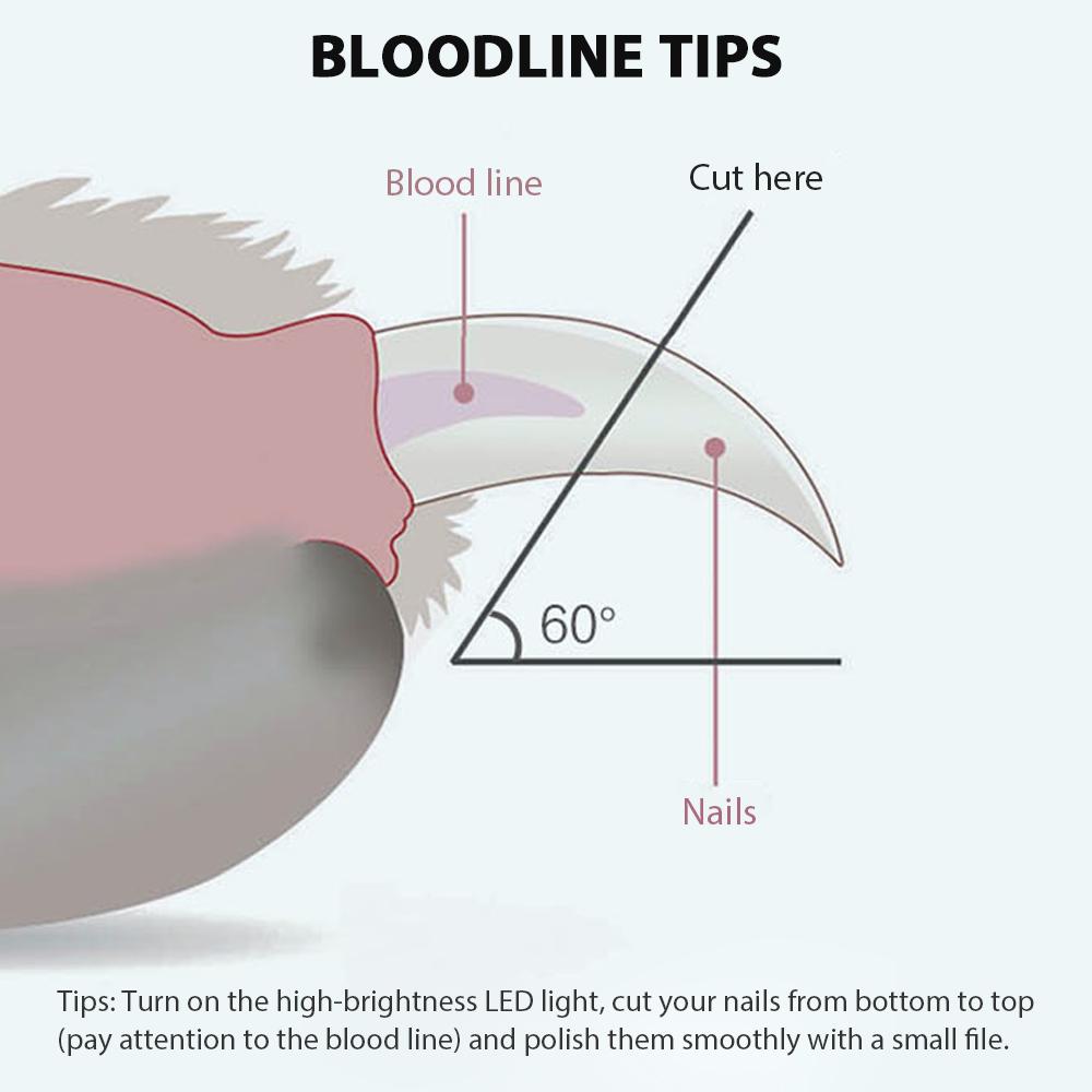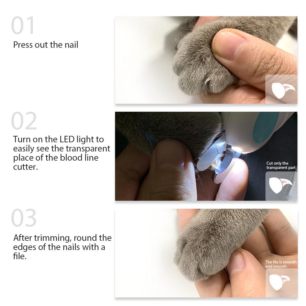 Led Light --- The bright LED lights make it easier to find bloodlines in cat or dog nails, which can greatly reduce the risk of overcutting nails and hurting pets due to rapid cuts. Thanks to this innovative design, no more bleeding when nail trimming and make the grooming more relaxed.