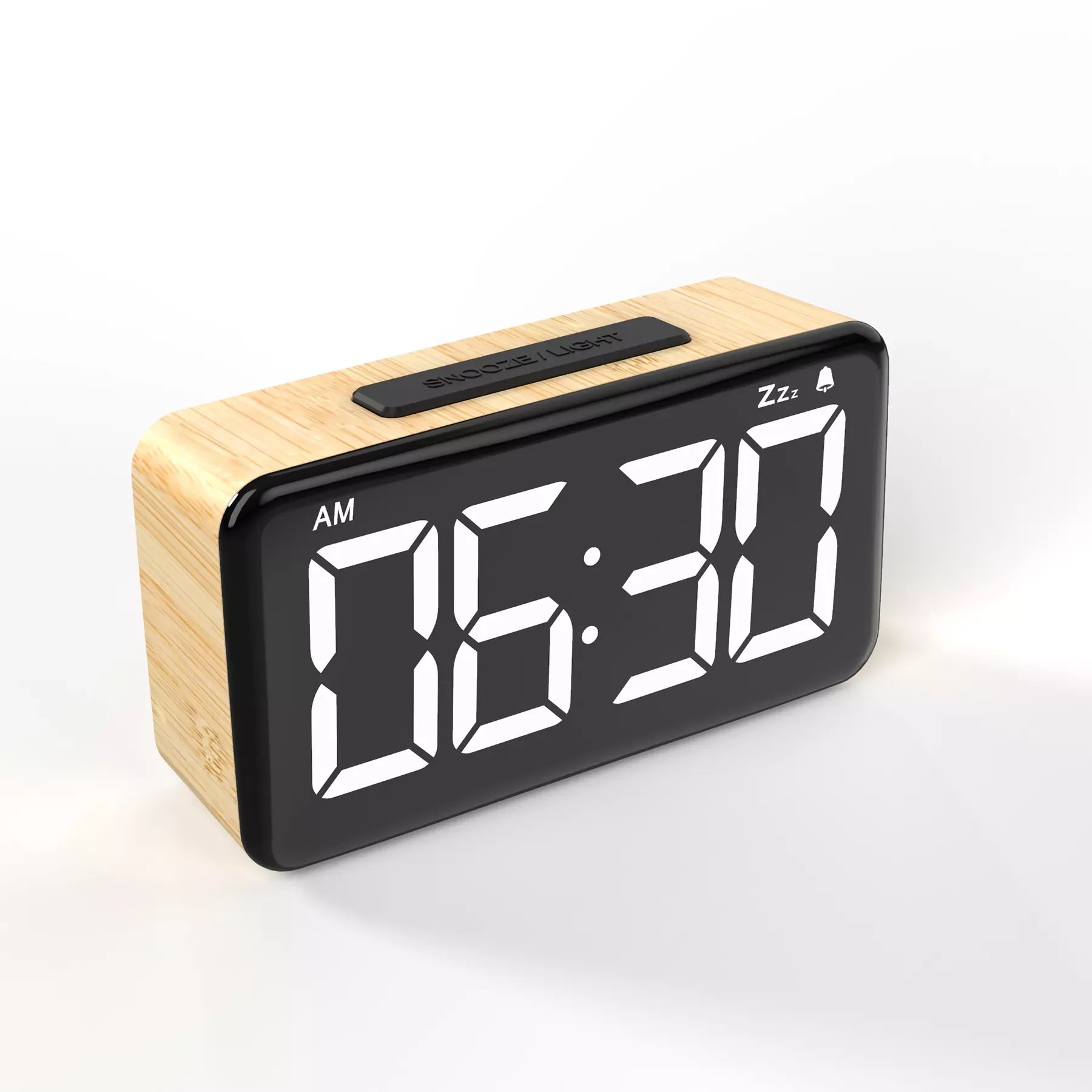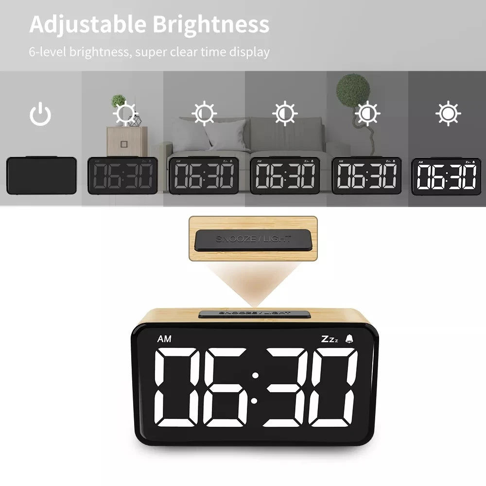 Modern LED Digital Clock Wooden Alarm Clock Snooze Display Time Electronic Desk Table Clock Home Office Desktop Alarm Clock