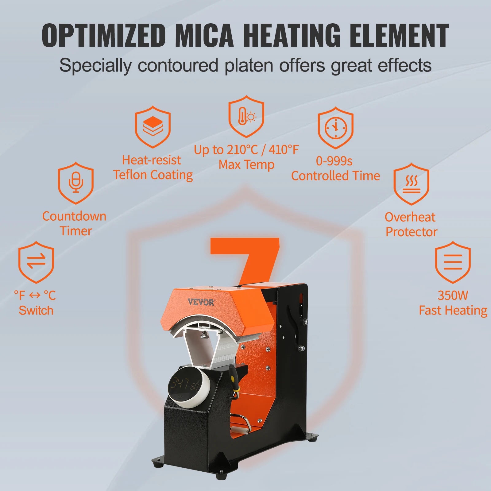 VEVOR 3-in-1 Auto Hat Cap Heat Press Machine 6.4x3.5in Press Knob Clamshell Sublimation Transfer w/ 3pcs Replaceable Heating Pad