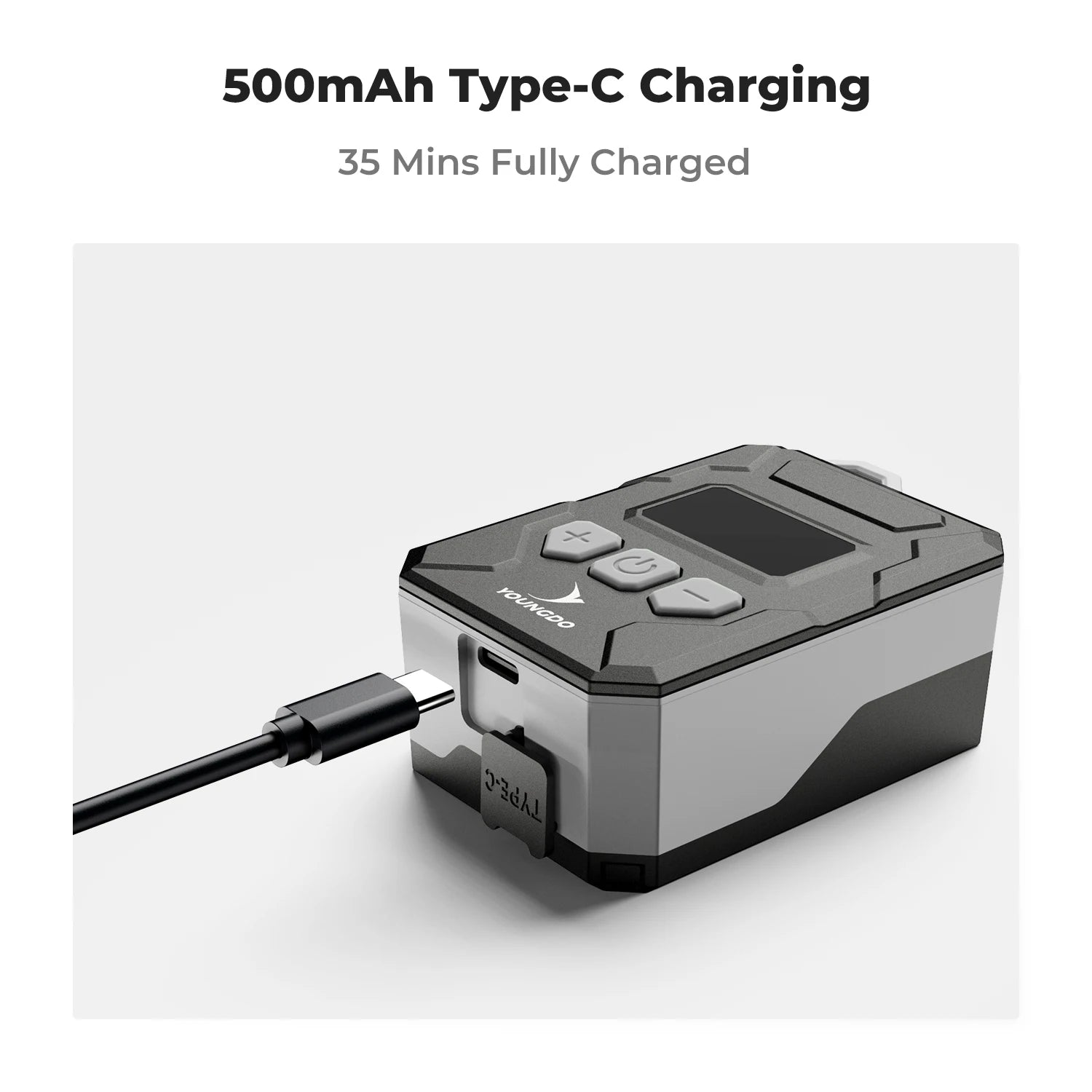 Fast Charging and Powerful: 500mAh battery capacity Equipped with a Type-C USB charging cable