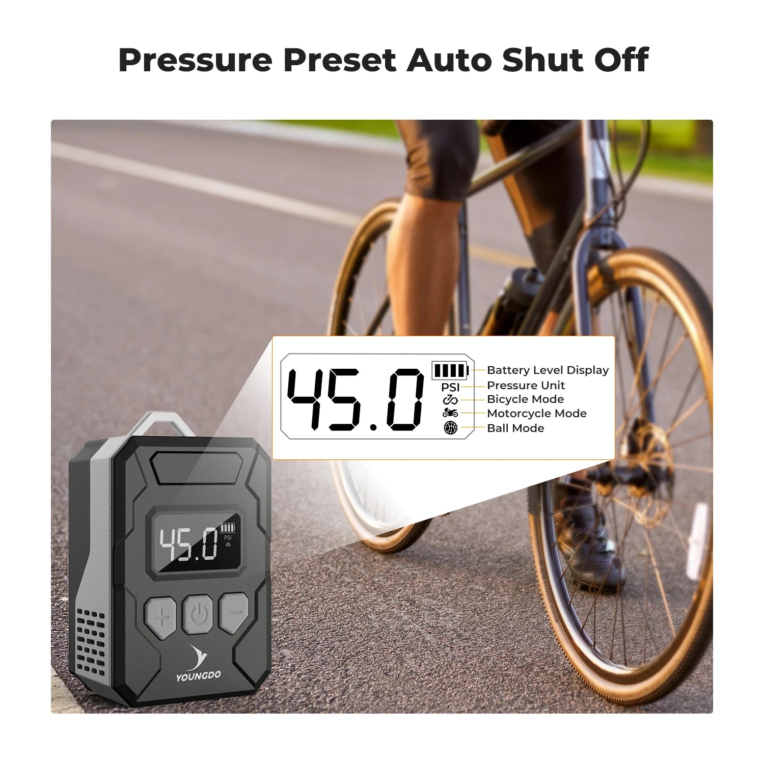 Special Feature: Pressure Detection, Portable, LED Light, Cordless, Quick Inflation